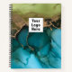Agregue su propio logotipo a un diario con un fondo artístico abstracto. Moody verde azulado, verde negro y oro. Disponible exclusivamente en Amore Amore on Zazzle; original arte abstracto de tinta alcohólica del artista internacional Pauline Benjes. Diario con el logotipo Green Black Gold DIY.