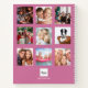 Crea tu propio y único collage de fotos familiares como regalo o para ti mismo. Utiliza cuatro o 9 de tus fotos favoritas de tu familia, amigos, destino de viaje soñado o mascota. Personaliza y agrega un nombre y tu letra de monograma. El nombre está escrito con un estilo de letra manuscrita moderna con florituras. Un fondo rosa oscuro. Para mantener las florituras, simplemente elimina el nombre de muestra, deja los espacios o emojis delante y detrás del nombre.