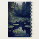 Un estanque oscuro lleno de lílpads y rodeado de árboles adorna la cubierta de esta revista estética oscura. Añade tu nombre a la portada trasera de este bloc de notas etéreo oscuro y hazlo suyo!