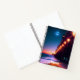 Diario personalizado de bala para amantes de la playa que presenta una pérgola con farolas encendidas y una luna llena brillante al anochecer. Diseño creado con software de IA. El tipo de papel se puede cambiar.