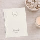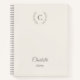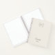Un cuaderno de marfil atemporal diseñado con un monograma refinado y detalles delicados de corona.