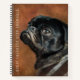 Retrato de perro de cerdo negro. Los Grandes Pensadores Mantienen Las Revistas. Motivación, inspirador dicho/cita. Un retrato de pintura al óleo digital Pug Dog negro precioso y hermoso. Con una camisa a rayas y con un ojo de ballena o mirada lateral, con un fondo marrón oscuro. Ricos colores neutros de tierra con un aspecto rústico y angustiado. Los insectos tienen una personalidad destacable y encantadora, a pesar de su pequeño tamaño. Listo para ser personalizado con su nombre en la parte posterior. Personalizable completo.