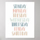 Presenta a tu pequeño a los días de la semana con este cartel de acuarela con letras a mano. Decora una pared en la guardería, dormitorio o sala de juegos de tu pequeño con esta impresión educativa para fomentar el aprendizaje diario.