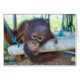 Este pequeño primate es una especie en peligro de extinción y es uno de los más de 350 orangutanes huérfanos bajo el cuidado de la Fundación Orangutan International. Tristemente, hay un flujo constante de recienes nacidos llegando, y algunos son mucho más jóvenes que esta novia. Se necesitan muchos años de cuidado antes de que un orangután tenga edad suficiente para sobrevivir por sí solo. Si sus madres no hubieran sido asesinadas durante la destrucción de la selva tropical, habrían permanecido con sus madres durante aproximadamente siete años. Los costos son asombrosos. Durante todo el día, las "madres sustitutas" humanas alimentan y juegan con ellas y trabajan enseñándoles a estos huérfanos las habilidades de supervivencia, como construir nidos, elegir la vegetación para comer y evitar las serpientes venenosas. El 100% de las ganancias del artista de este artículo se donan a O.F.I. *** Puedes fomentar un huérfano en el sitio web oficial de OFI—www.orangutan.org ***