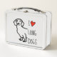 Dibujo simple de Dachshund lindo en combinación con meme divertido: ¡Me encantan los perros largos! Caja de almuerzo única, humorística y adorable, para todos los amantes de los perros salchicha.