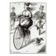 Dibujo animado de una señora en un velocípedo,