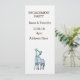 Tarjeta de invitación parcial de compromiso con un par de jirafas besando. Interesante e inusual para ocasiones bodas.Elegante espalda con rosas acuarelas y dibujo de jirafas.