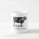 Esta taza ofrece mi dibujo de lápiz de una vaca de ganado que se coloca en la sombra de un árbol en una mañana soleada. Las palabras "café Moog" aparecen debajo de la imagen.