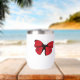 Dibujo de Mariposa Roja, color de fondo personalizado. Taza personalizada, fácil de agregar tu nombre.