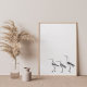 Dibujo moderno de líneas minimalistas de un trío de aves en blanco y negro.