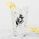 Sirenita dibujando vidrio de bebida con un ilustracion de tinta que representa una hermosa criatura marina -mitad pez, figura de mitad mujer. Esta obra de arte monocromática en blanco y negro es de color opaco con muchos puntos en un estilo similar al arte del tatuaje.