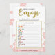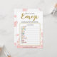 Este juego moderno de "Pictionary de Emoji" floral para despedida de soltera presenta un fondo floral rosa con salpicaduras de brillo dorado. El texto está escrito en una mezcla de una fuente de caligrafía juguetona y una fuente sans moderna, esta tarjeta de Pictionary de Emoji está personalizada con el nombre de la novia y la fecha de la despedida de soltera.