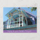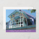 Saludo desde el Viñeyard Postcard de Martha Bed & Breakfast con una cubierta violeta, azul, amarillo y blanco en la ventana.