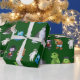 Papel verde de envoltura con todos los monstruos del libro Ten Little Monsters Standing in a Line.