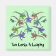 Ilustracion gráfico de diez lagartos con coronas saltando y trompetas jugando.