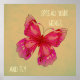 Esparza tus alas y cita con mariposa de mosca con un diseño de mariposa rosa delicada, dibujada artistalmente con inspiración de influencias artísticas de estilo asiático u oriental. Este diseño está decorado con un fondo amarillo pálido y tiene un ambiente vintage o retro. cita inspiradora