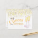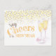 Saluda a las invitaciones de postales de copas de champán de Año Nuevo. gafas de champán de color agua pintadas a mano con relleno de champán amarillo dorado dicen ovaciones al estilo de las postales fiestas de Año Nuevo. Personalice con sus propios detalles del fiesta de Año Nuevo colocados en un sello y escriba en su dirección de recepción. Arte y diseño de la acuarela original de Sarah Trett www.sarahtrett.com para www.mylittleeden.com en zazzle.