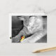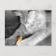 Una postal bonita y peculiar en la que aparece Fred el pato de goma en una posición aparentemente peligrosa con un gato. Regalos creativos originales usando fotografía y manipulación del color de la imagen por Fred vs. World.