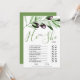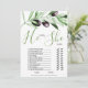 Añade un toque de diversión y elegancia a tu ducha de novias con nuestra tarjeta de ramas de olivo He Said She Said, diseñada para despertar la risa y la conexión entre tus invitados. Los acentos de ramas de olivo suaves crean un ambiente natural y sofisticado, perfecto para los temas rústicos, boho o modernos. Con sus juegos de indicadores, esta carta de juego anima momentos alegres mientras amigos y familiares adivinan las respuestas del novio o la novia. El intemporal diseño de la vegetación aporta un ambiente fresco y apacible, lo que lo convierte en un encantador añadido a la decoración de eventos. Diseñado sobre cartón de calidad, ofrece una superficie de escritura suave y durabilidad para keepsakes. El diseño elegante garantiza una fácil lectura, al mismo tiempo que mantiene el foco en la diversión. A los huéspedes les encantará participar en esta actividad interactiva, creando recuerdos que la novia apreciará. Esta tarjeta es una mezcla ideal de encanto, entretenimiento y elegancia.