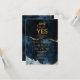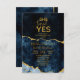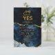 Diseño de Geode Dorado de Marble de color Azul y Relieve metalizado dorado de Marina, con fuentes modernas y manuscritas. Moda y moda Dijo ¡Sí, invitaciones a la fiesta de compromiso! ~ Revisa mi tienda para ver toda la suite boda para este diseño!