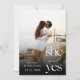 Ella dijo que sí, tarjeta de invitación de compromiso moderna que incluye tipografía minimalista moderna y una de tus fotos favoritas.
