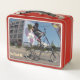 Portland tallbike clown and rock n roller on a metal lunchbox. Photo by Saturn Burmeister.