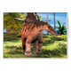 Representación digital 3D de un dinosaurio Kentrosauro sobre el fondo de palmeras verdes y un cielo azul