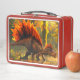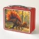 Esta caja de almuerzo tiene un dinosaurio retratado.