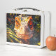 Esta caja de almuerzo tiene un dinosaurio.