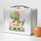 Esta fantástica caja de almuerzos para niños personalizada incluye un simpático y ligeramente regordete dinosaurio t-rex con tonos pastel y verde suave que llevan un enorme signo de nombre de piedra tallada a mano. Personalizar el cartel con el nombre de tu pequeña.