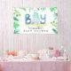 Cute, es un cartel con la temática de los dinosaurios de Baby Shower de CHICO! El diseño presenta una adorable acuarela de un bebé dinosaurio recién nacido nacido de un huevo, una tipografía colorida, hojas de palma y otras plantas botánicas. La plantilla es una combinación de escritura caligráfica y tipografía negra moderna con un fondo blanco clásico. Personalice este cartel de ducha de bebé agregando su propio nombre y fecha.