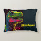 Dinosaurio T Rex Kids Accent Pillow T Rex Dinosaurio en diferentes tonalidades de rojo profundo, azul, amarillo, verde tierra. Genial para los niños o para cualquier niño. Amante de la arqueología. Evolución animal extintas en un diseño de estilo pop de arte retro Jussica, era prehistórica y reptil.