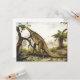 Ilustración antigua herbívoro prehistórico animal salvaje, el Plateosaurus. Un dinosaurio comedor de plantas del período Triásico tardío comiendo hojas en un paisaje de selva.