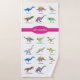 Añada un nombre Childs para crear la perfecta personalización de la bella acuarela colorida paleontología rosa baño educativo o decoración de dormitorio en suite para el chica que ama los dinosaurios en color rosa. Decoración de dormitorio personalizada Dino con 12 dinosaurios en colores psicodélicos brillantes con sus nombres de dino en un fondo verde azulado. Este divertido patrón colorido incluye todos los favoritos de la era jurásica prehistórica, incluyendo T. rex o tirannosaurus, velociraptores, brachiosaurus, brontosaurus, estegosaurus, el pterodáctilo volante, triceratops, spinosaurus, tobilosauro, plesiosaurios, parasaurolophus y pachycephalosaurus un divertido desafío ortográfico para cualquier niño.