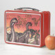 Tres Apatosaurus disfrutan de una comida al atardecer.