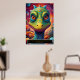 Dinosaurio caprichoso y vibrante que parece ser una mezcla de fantasía y encanto prehistórico. El dinosaurio tiene un cuello largo y una cabeza grande, con una expresión de ojos amplios con ojos cautivadores y sobredimensionados que le dan un aspecto lindo y curioso. Su piel está adornada con patrones intrincados que se asemejan a formas y puntos coloridos y giratorios, casi como si su cuerpo estuviera pintado con un caleidoscopio de texturas en azul, verde, amarillo y violeta. El vibrante fondo, con sus cielos giratorios y planetas abstractos, da la impresión de un paisaje de otro mundo, sugiriendo que el dinosaurio reside en un mundo surrealista y fantástico. Los colores brillantes y exagerados y las características lúdicas le dan a la criatura un carácter agradable y animado, ideal para un entorno mágico o de ensueño. Este dinosaurio podría pertenecer a una especie imaginada de un reino cósmico, donde la flora y la fauna prosperan en ecosistemas vibrantes y psicodélicos, mezclando la vida prehistórica con un giro de la era espacial. Su comportamiento exude inocencia y asombro, como si estuviera explorando su fantástico universo por primera vez.