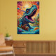 Dinosaurio caprichoso y vibrante que parece ser una mezcla de fantasía y encanto prehistórico. El dinosaurio tiene un cuello largo y una cabeza grande, con una expresión de ojos amplios con ojos cautivadores y sobredimensionados que le dan un aspecto lindo y curioso. Su piel está adornada con patrones intrincados que se asemejan a formas y puntos coloridos y giratorios, casi como si su cuerpo estuviera pintado con un caleidoscopio de texturas en azul, verde, amarillo y violeta. El vibrante fondo, con sus cielos giratorios y planetas abstractos, da la impresión de un paisaje de otro mundo, sugiriendo que el dinosaurio reside en un mundo surrealista y fantástico. Los colores brillantes y exagerados y las características lúdicas le dan a la criatura un carácter agradable y animado, ideal para un entorno mágico o de ensueño. Este dinosaurio podría pertenecer a una especie imaginada de un reino cósmico, donde la flora y la fauna prosperan en ecosistemas vibrantes y psicodélicos, mezclando la vida prehistórica con un giro de la era espacial. Su comportamiento exude inocencia y asombro, como si estuviera explorando su fantástico universo por primera vez.
