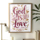 Mejora tu espacio con este hermoso arte mural "Dios es amor" inspirado en 1 John 4:8. El diseño presenta una paleta de colores cálidos, rosa y dorado, con corazones delicados y follaje que enmarcan el mensaje inspirador. Perfecto para añadir un toque de fe y elegancia a cualquier habitación, esta pieza es ideal para aquellos que buscan reflejar sus creencias en su decoración de casa o para dar como un regalo significativo.