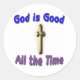 Dios es bueno en azul, todo el tiempo en morado y cruz de oro entre ellos. Pegatina perfecto para cristianos de todas las edades.