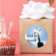 Fotografía original de una brillante cruz de iglesia en hermosos cielos azules con las palabras "Dios es bueno". Cambiar fácilmente el texto para personalizar. Un pegatina inspirador para Navidades y Pascua, así como todo el año.