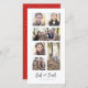 Esta tarjeta de collage de 6 fotos muestra el mensaje religioso cristiano "Dios es bueno" en una imagen escrita a mano. Perfecto para mostrar todas sus bendiciones esta temporada de vacaciones, esta tarjeta vertical tiene 4 puntos de foto cuadrados, uno horizontal y uno vertical. El dorso es rojo con puntos nevados blancos, pero el color se puede ajustar haciendo clic en "personalizar".