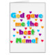 El texto colorido grande, brillante con las porciones de corazones lee a "dios me dio la mejor mamá!" ¡en la mejor mamá T-shirts, pegatinas, las bolsas de asas, tarjetas, monos, y más!