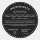 La etiqueta contiene : - Lista de ingredientes - Direcciones - Logo - Iconos de medios sociales - Peso neto