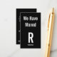 Comparte tu nueva dirección con contactos o desliza dentro de tus tarjetas o invitaciones, nuestras tarjetas de invitación móviles de doble cara tienen un gran monograma blanco. Personalice la invitación de su personalizado (muestra: 'nos hemos mudado'). En la parte posterior, incluya su(s) nombre(s) y la información de cambio de dirección.