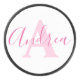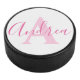 Disco De Hockey Andrea monograma texto rosa nombre personalizado i