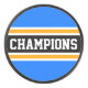 Este diseño de equipo ganador incluye texto de CHAMPIONS grande en forma de atletismo dentro de una amplia franja central horizontal negra con franjas de carreras amarillas y blancas adyacentes contra las correas de borde exterior azul brillante. Los colores y el texto de este diseño se pueden personalizar.