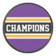 Este diseño de equipo ganador incluye texto de CHAMPIONS grande en forma de atletismo dentro de una amplia franja central horizontal negra con franjas de carreras amarillas y blancas adjuntas contra las audaces franjas de borde exterior violeta. Los colores y el texto de este diseño se pueden personalizar.