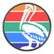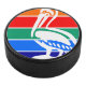 Hockey Puck con un diseño con la bandera de San Petersburgo, Florida. Bandera de rayas naranjas, rojas, verdes, azules y azul marino con un símbolo de pelícano blanco