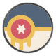 Hockey Puck con un diseño con la bandera de Tulsa, Oklahoma. Bandera beige y azul marino con un escudo Osage dorado que contiene un círculo rojo y una estrella beige de seis puntas