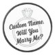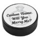 Pop the question in a bold and unforgettable way with this customizable hockey puck featuring an engagement ring design and personalized text. The default message reads “Will you marry me?”, but all text can be changed, making this a creative proposal idea for hockey fans and sports lovers.